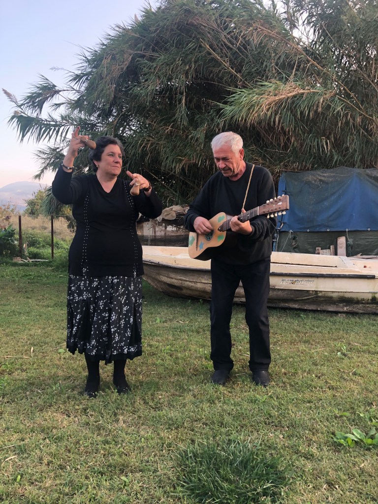Oggi continuiamo questa tradizione, suonando nelle piazze e raccontando le storie dei cantori e celebriamo, con mia moglie Rosa, gli amori del passato e quelli di oggi armati di chitarra battente e castagnole”.
